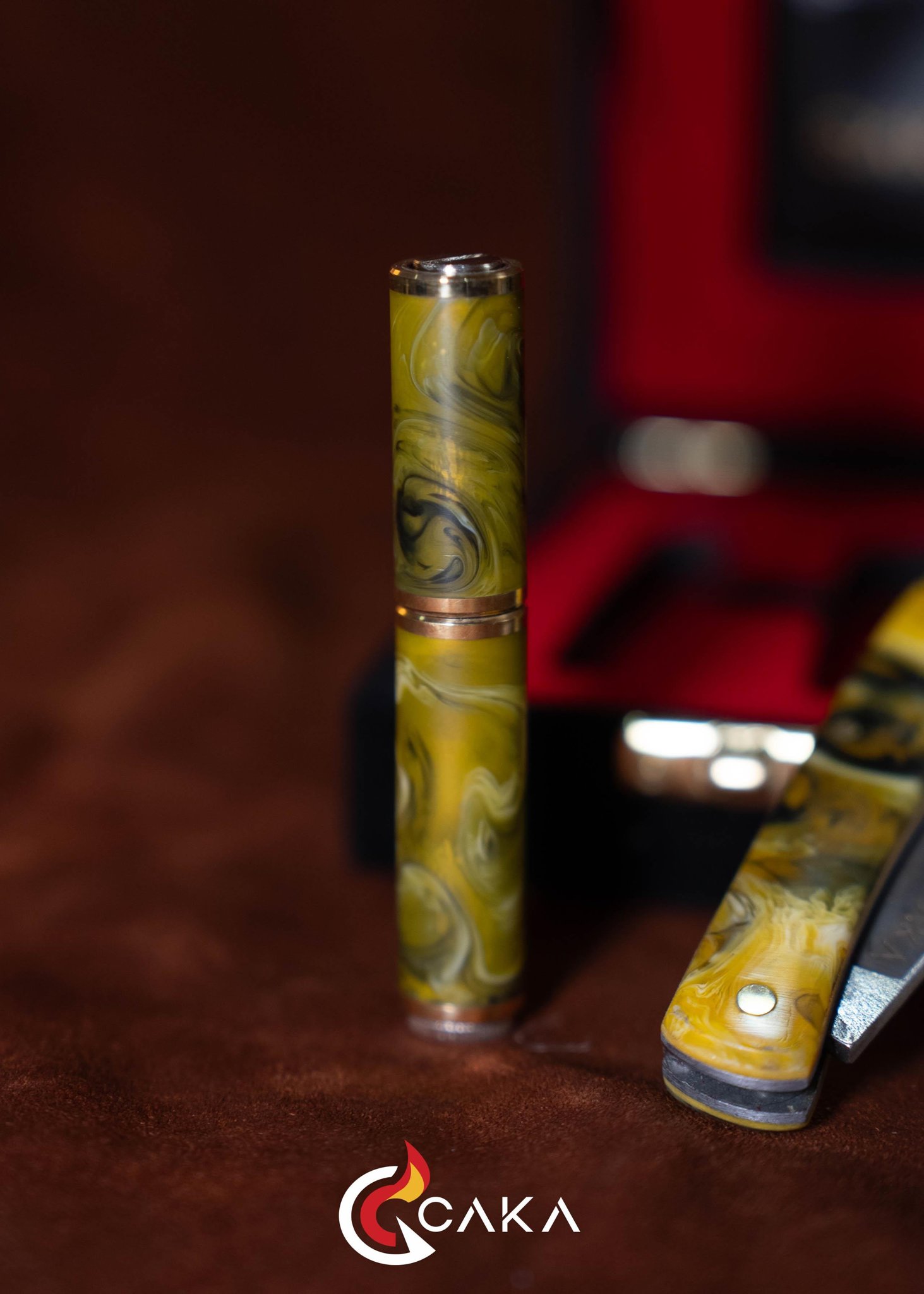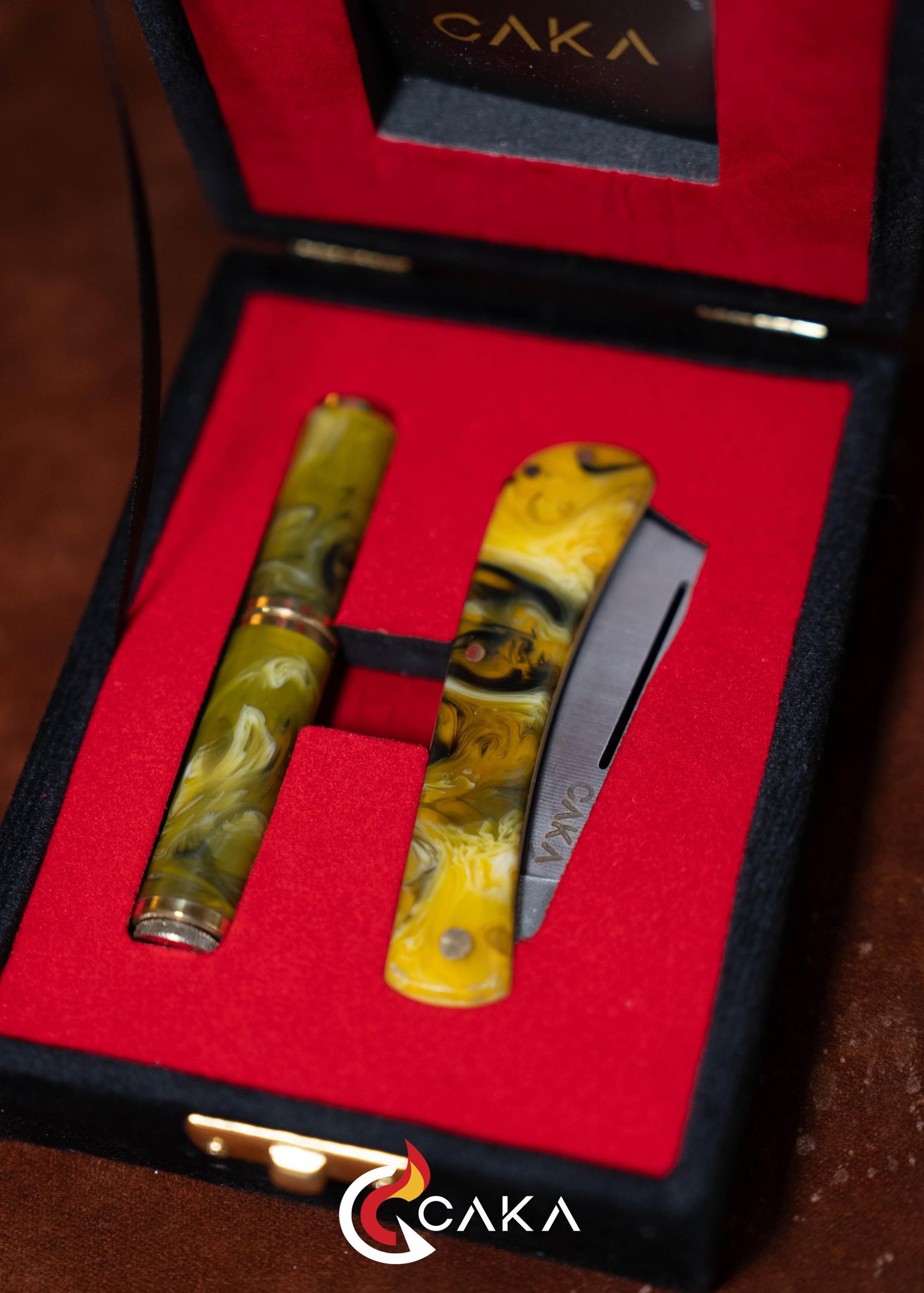 Origin - Bıçak Çakmak Seti, CAKA’nın bıçak & çakmak kategorisinde el işçiliğiyle hazırlanan özel setlerinden biridir. Epoksi ve pirinç gövde yapısı ile 4140 çelik bıçak formu bir araya gelir; serinin ilk yorumu olarak dengeli hatları ve güçlü malzeme hissini öne çıkarır. Her sette desen, ton ve yüzey geçişleri doğal üretim karakteri nedeniyle kendine özgüdür.