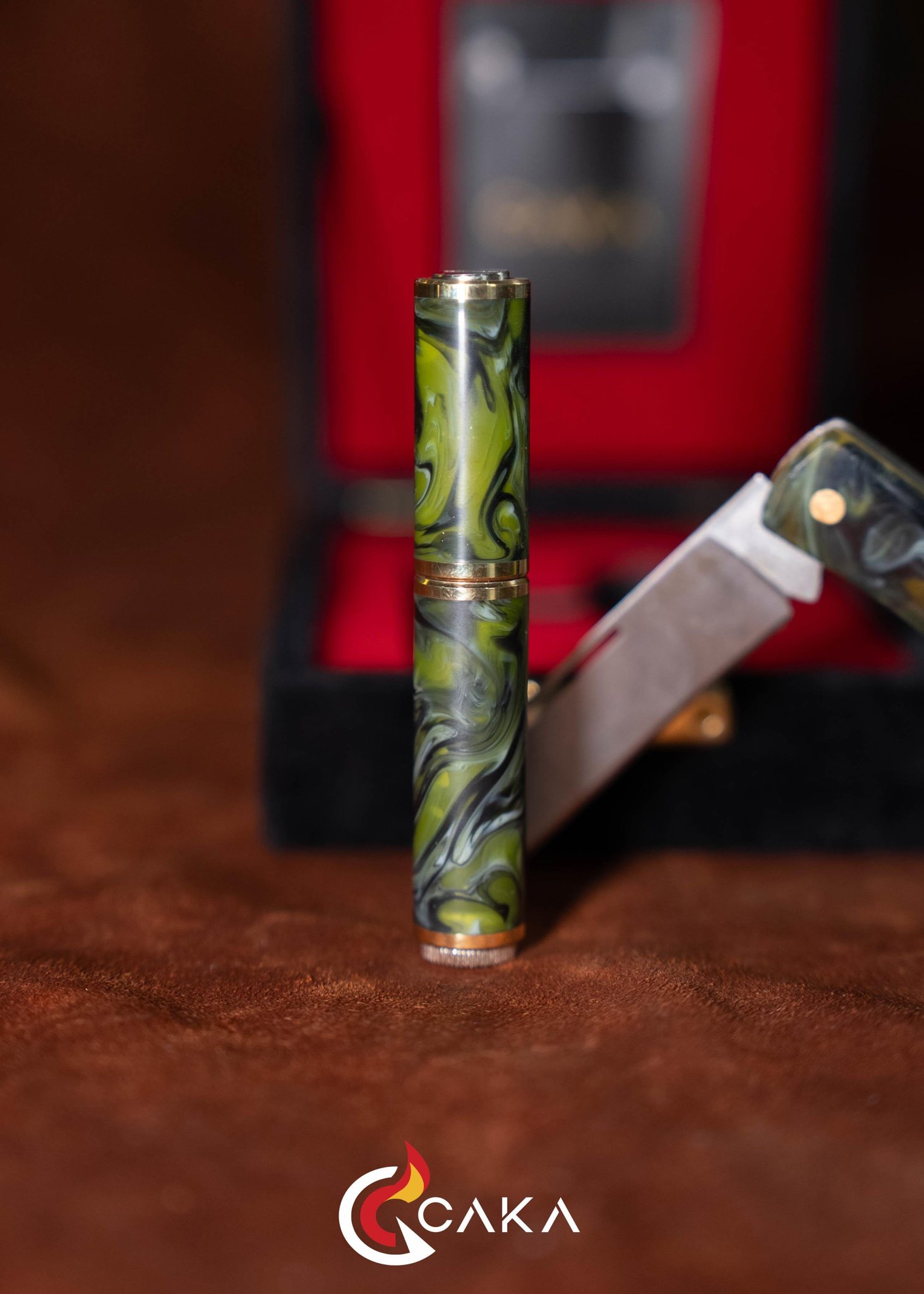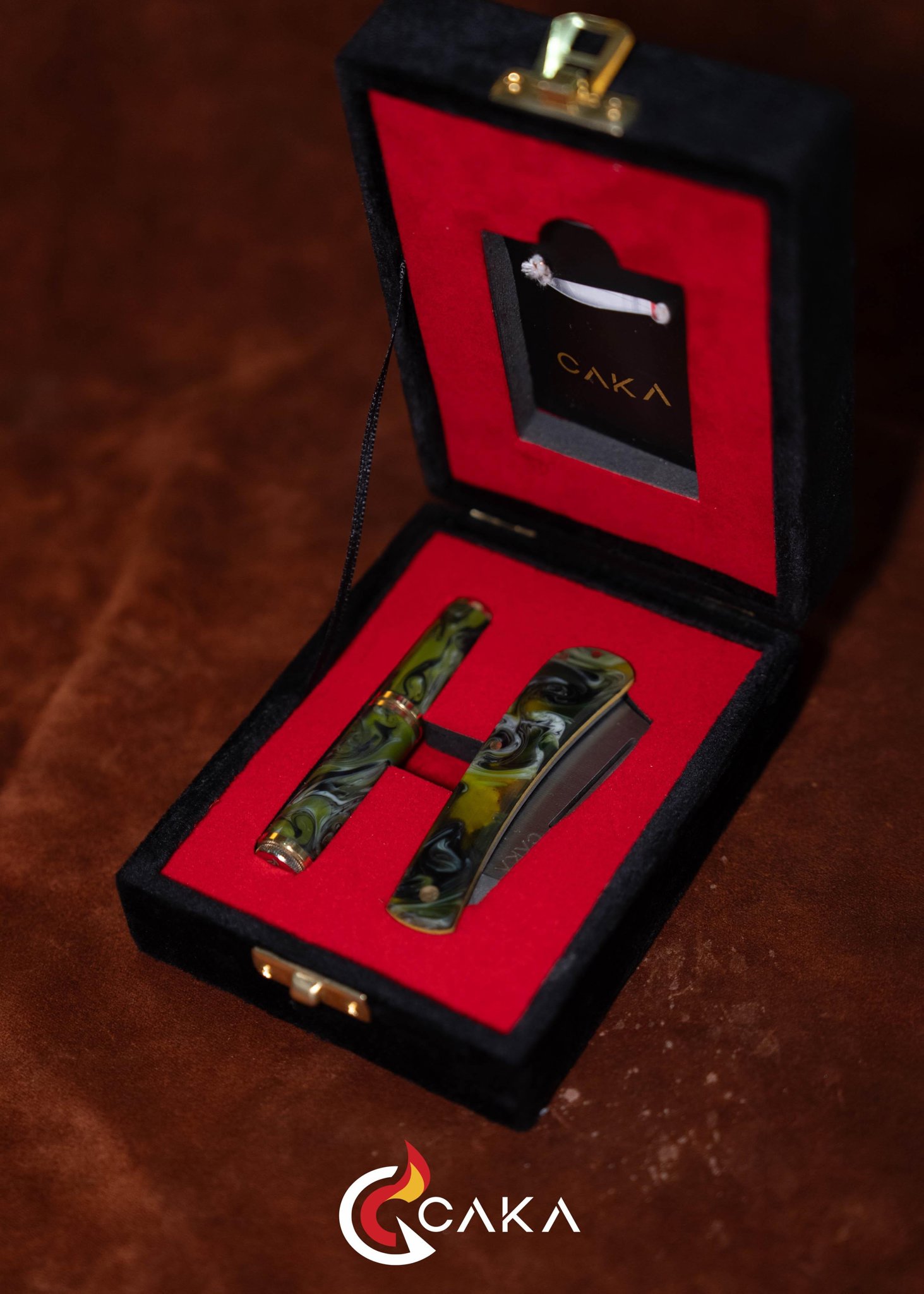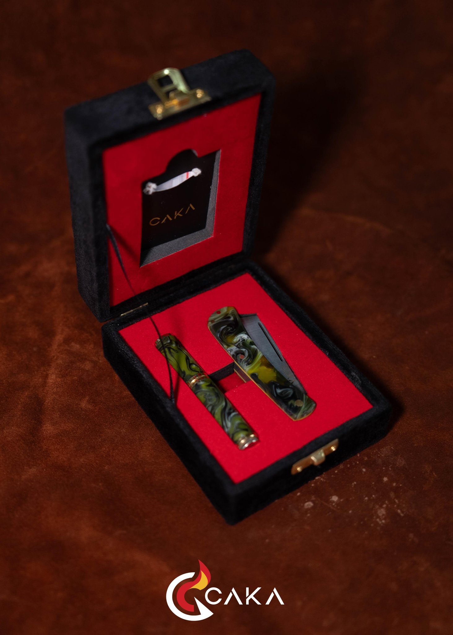 Origin - Bıçak Çakmak Seti, CAKA’nın bıçak & çakmak kategorisinde el işçiliğiyle hazırlanan özel setlerinden biridir. Epoksi ve pirinç gövde yapısı ile 4140 çelik bıçak formu bir araya gelir; serinin ilk yorumu olarak dengeli hatları ve güçlü malzeme hissini öne çıkarır. Her sette desen, ton ve yüzey geçişleri doğal üretim karakteri nedeniyle kendine özgüdür.
