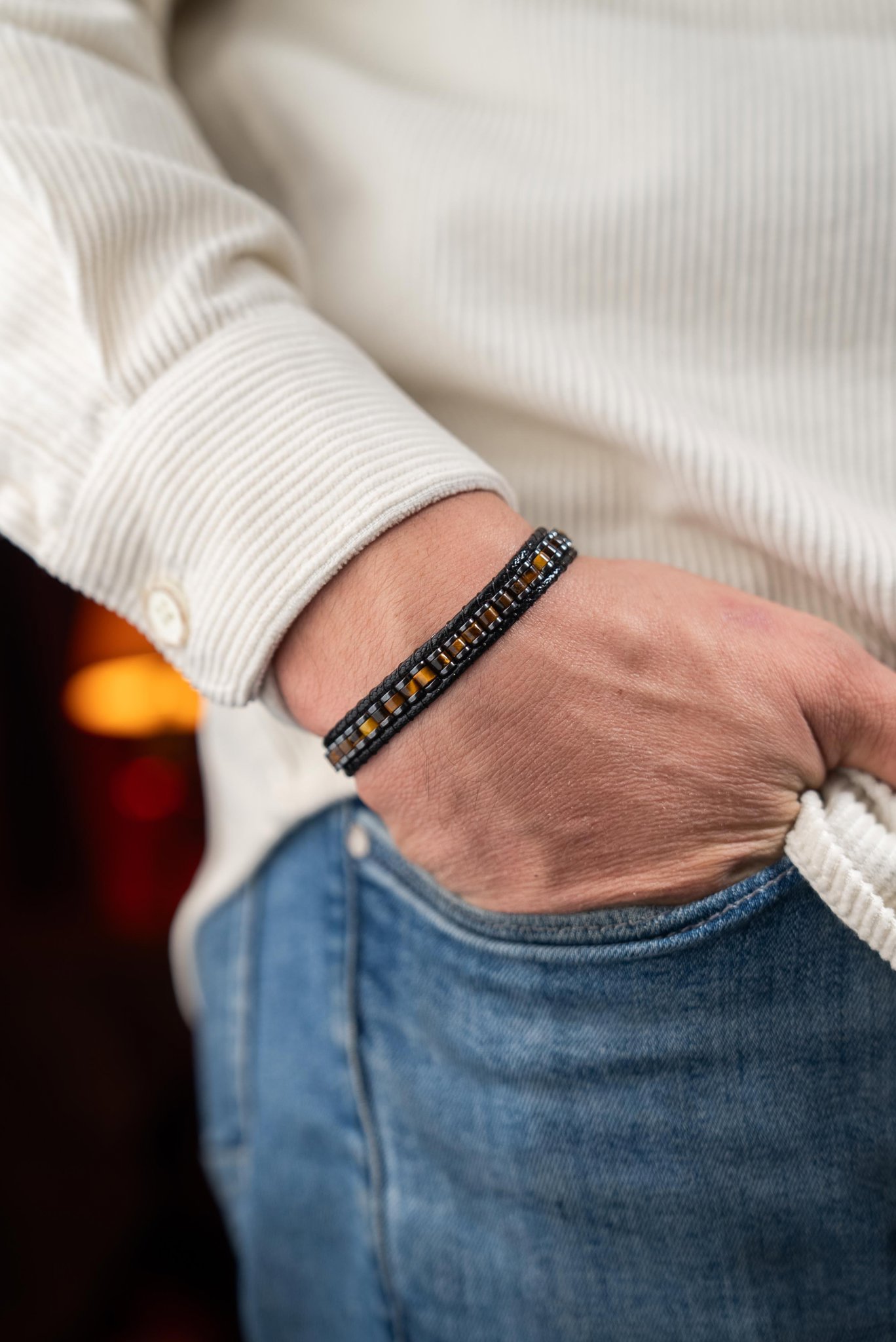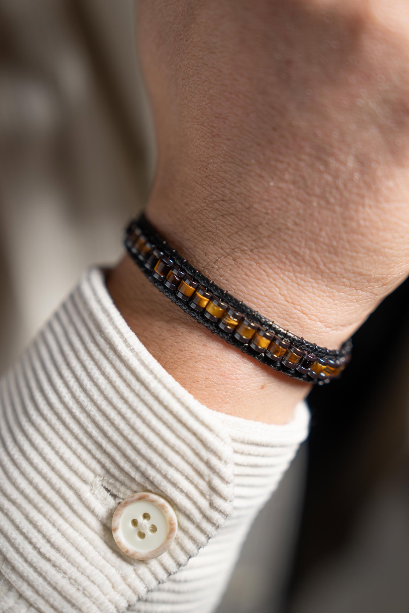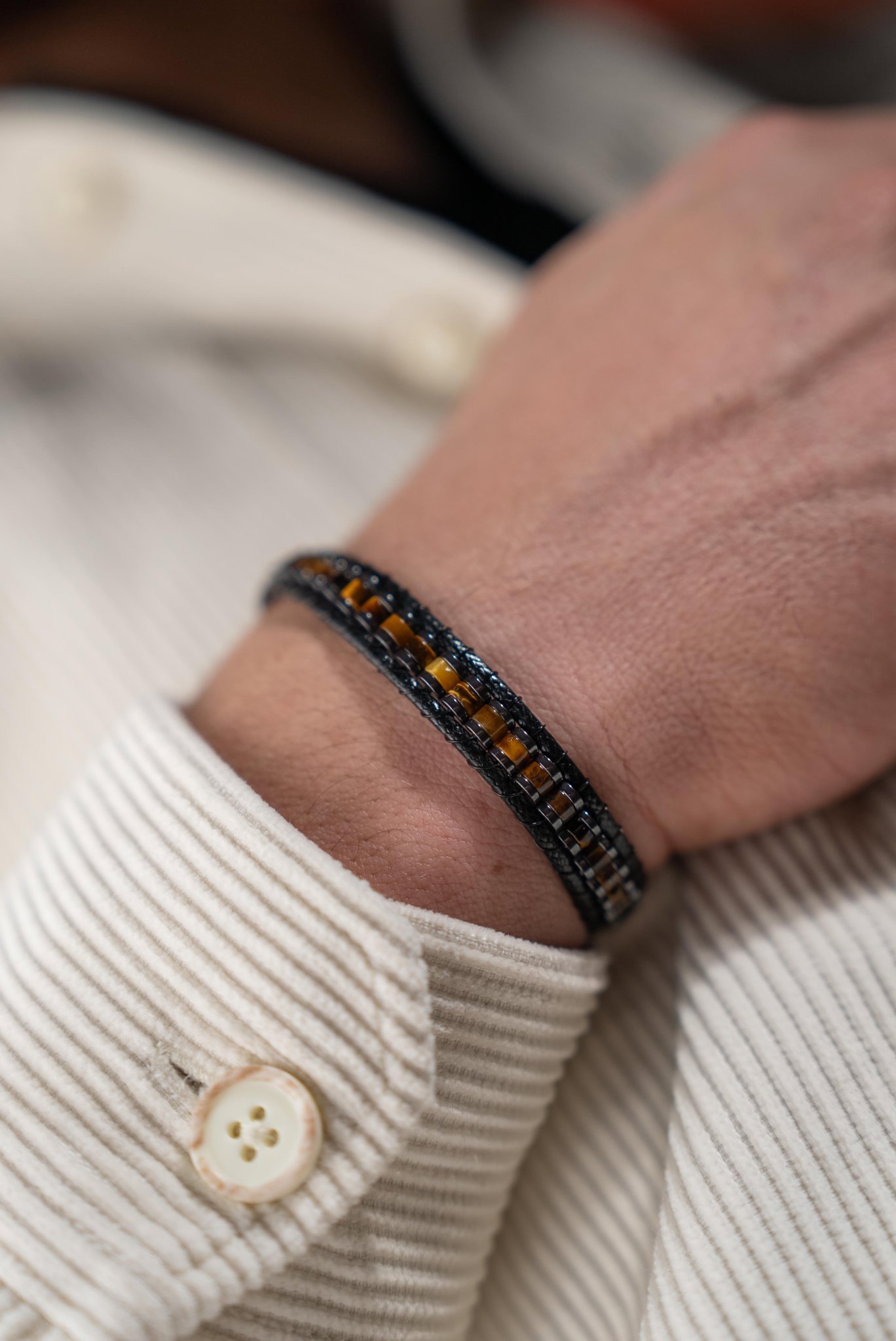 El yapımı olarak hazırlanan Kaplan Gözü, kaplan gözü ve hematit yapısıyla doğal ve şık bir görünüm sunar. Dengeli formu sayesinde günlük kullanıma uygundur ve kombinlerde karakterli bir tamamlayıcı olarak öne çıkar.