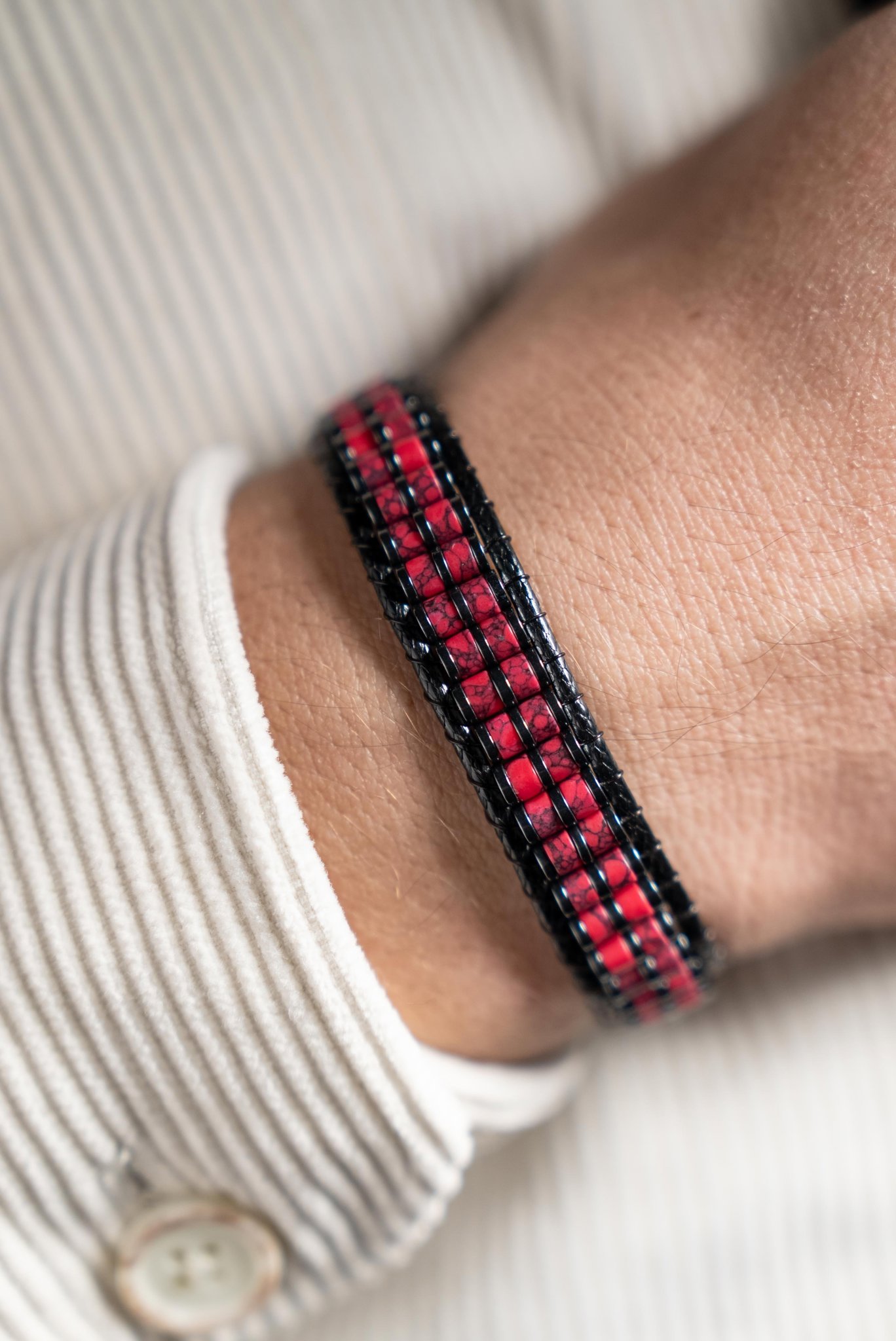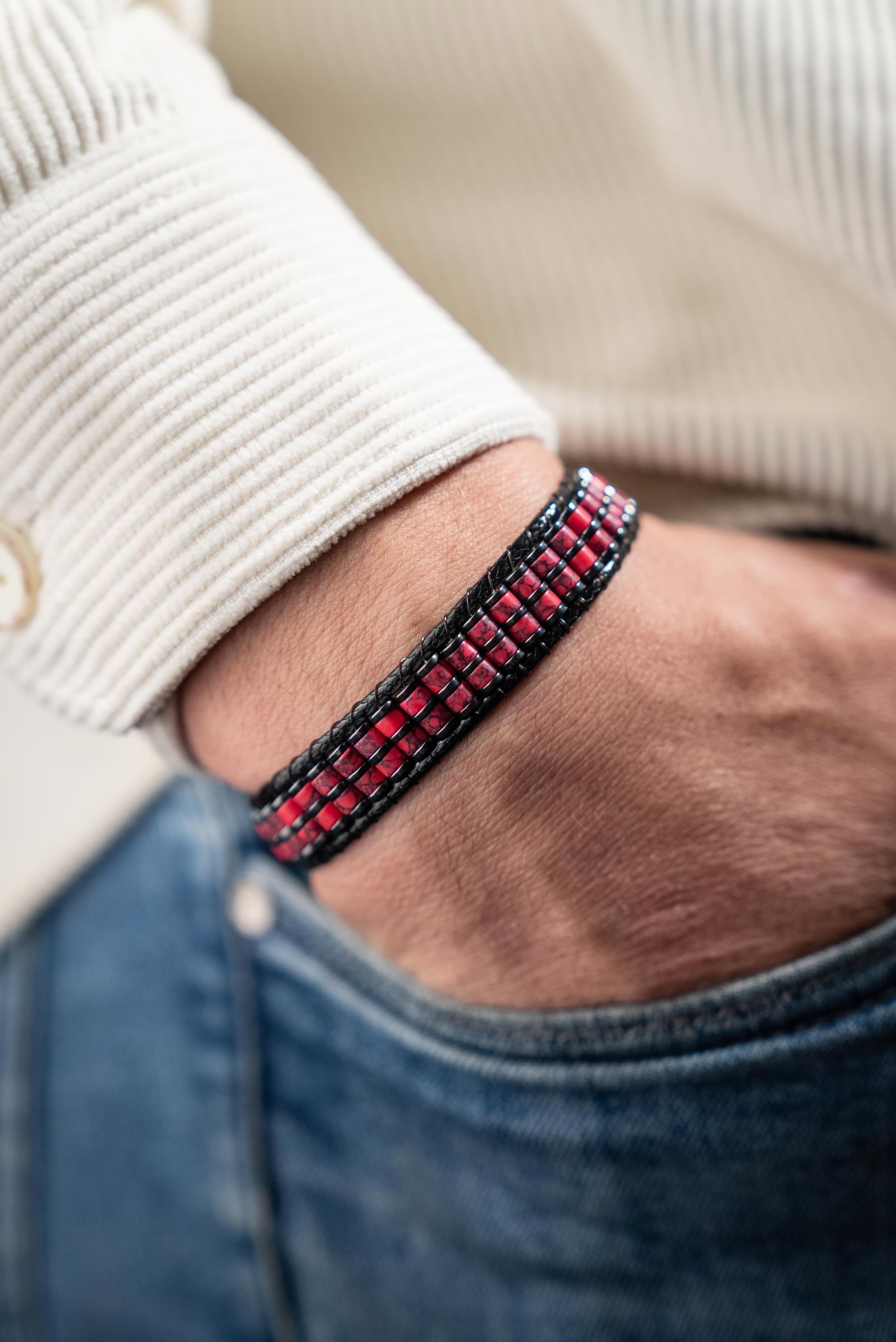 El yapımı olarak hazırlanan Kırmızı Varisit, kırmızı varisit ve hematit yapısıyla doğal ve şık bir görünüm sunar. Dengeli formu sayesinde günlük kullanıma uygundur ve kombinlerde karakterli bir tamamlayıcı olarak öne çıkar.