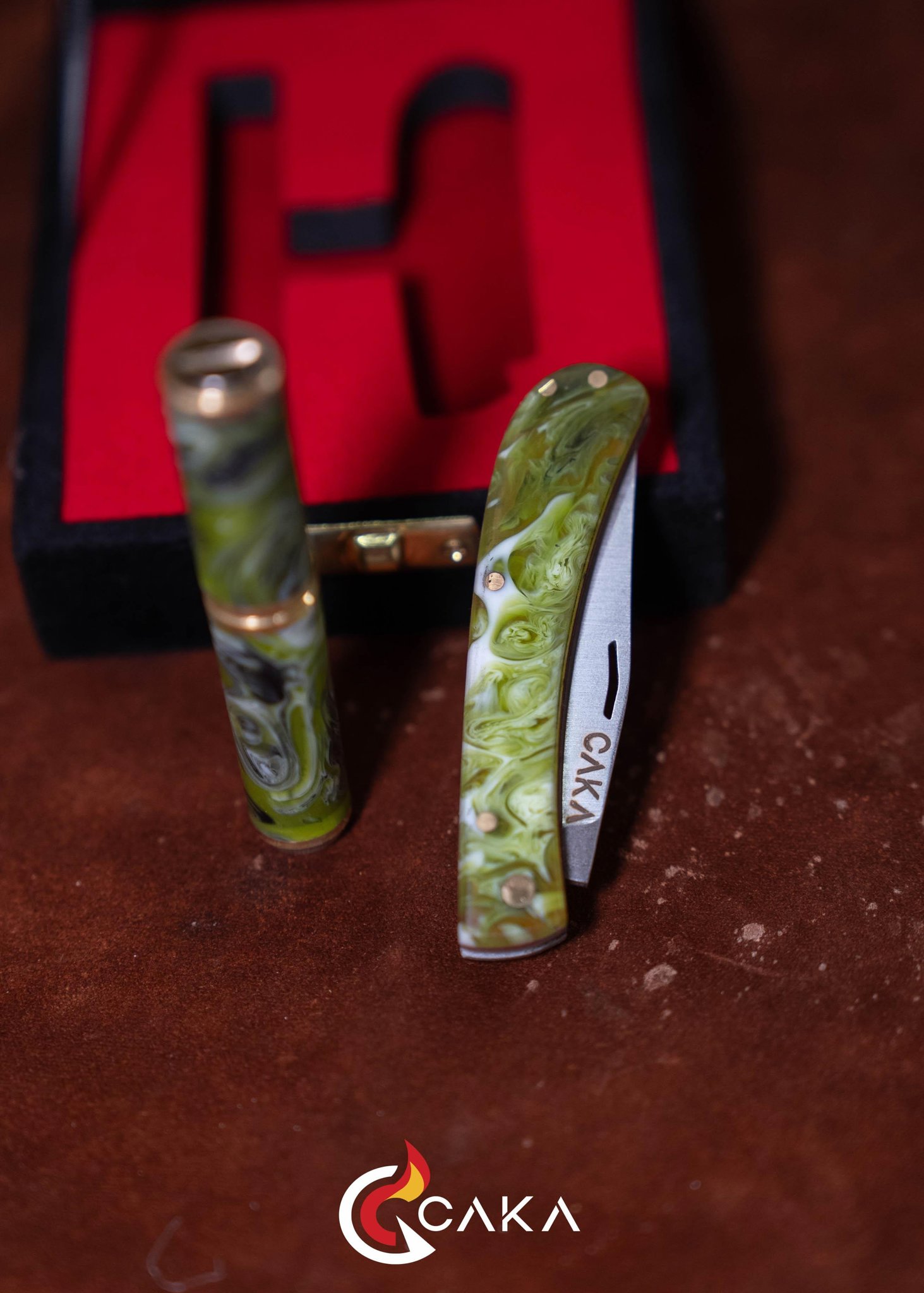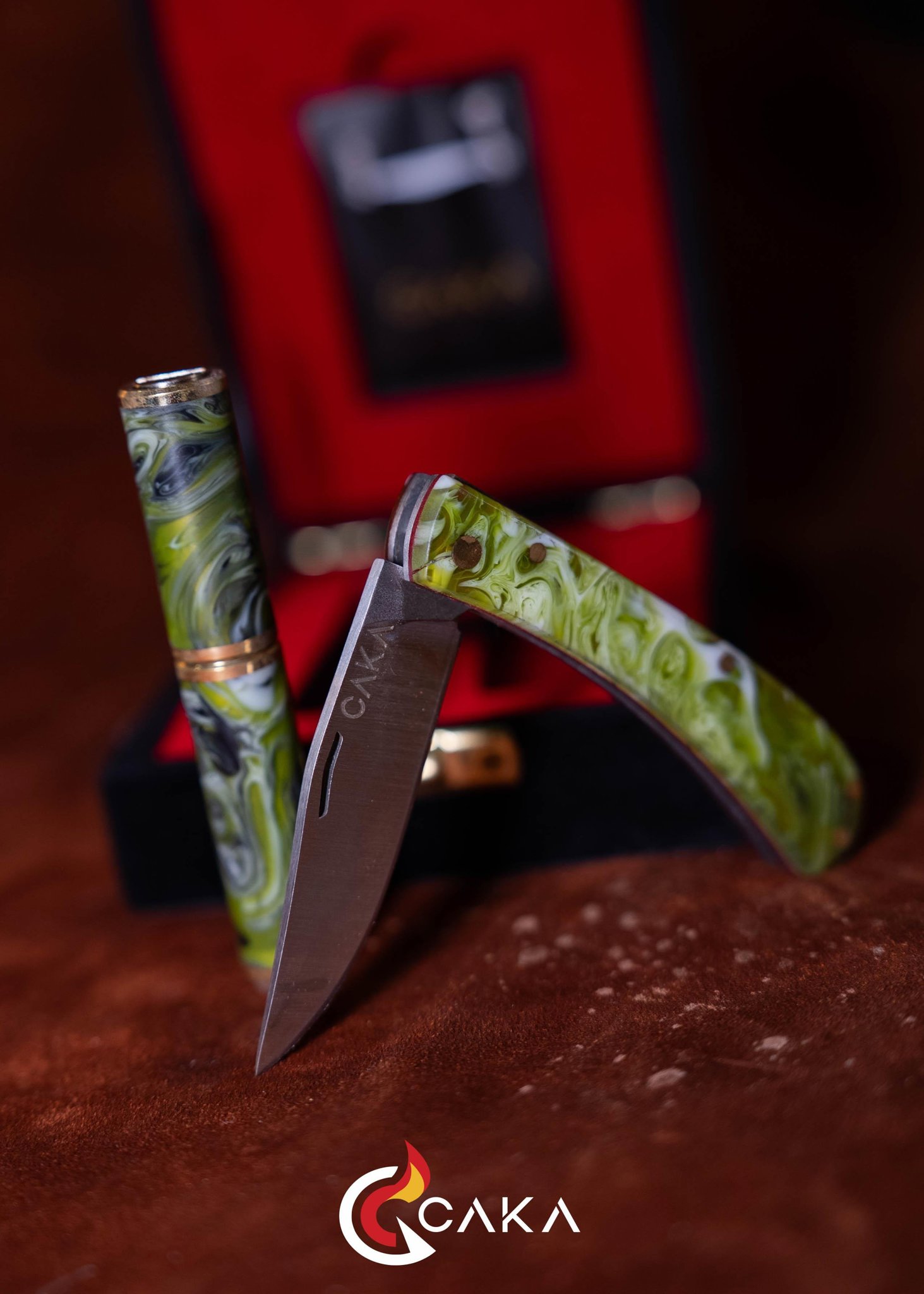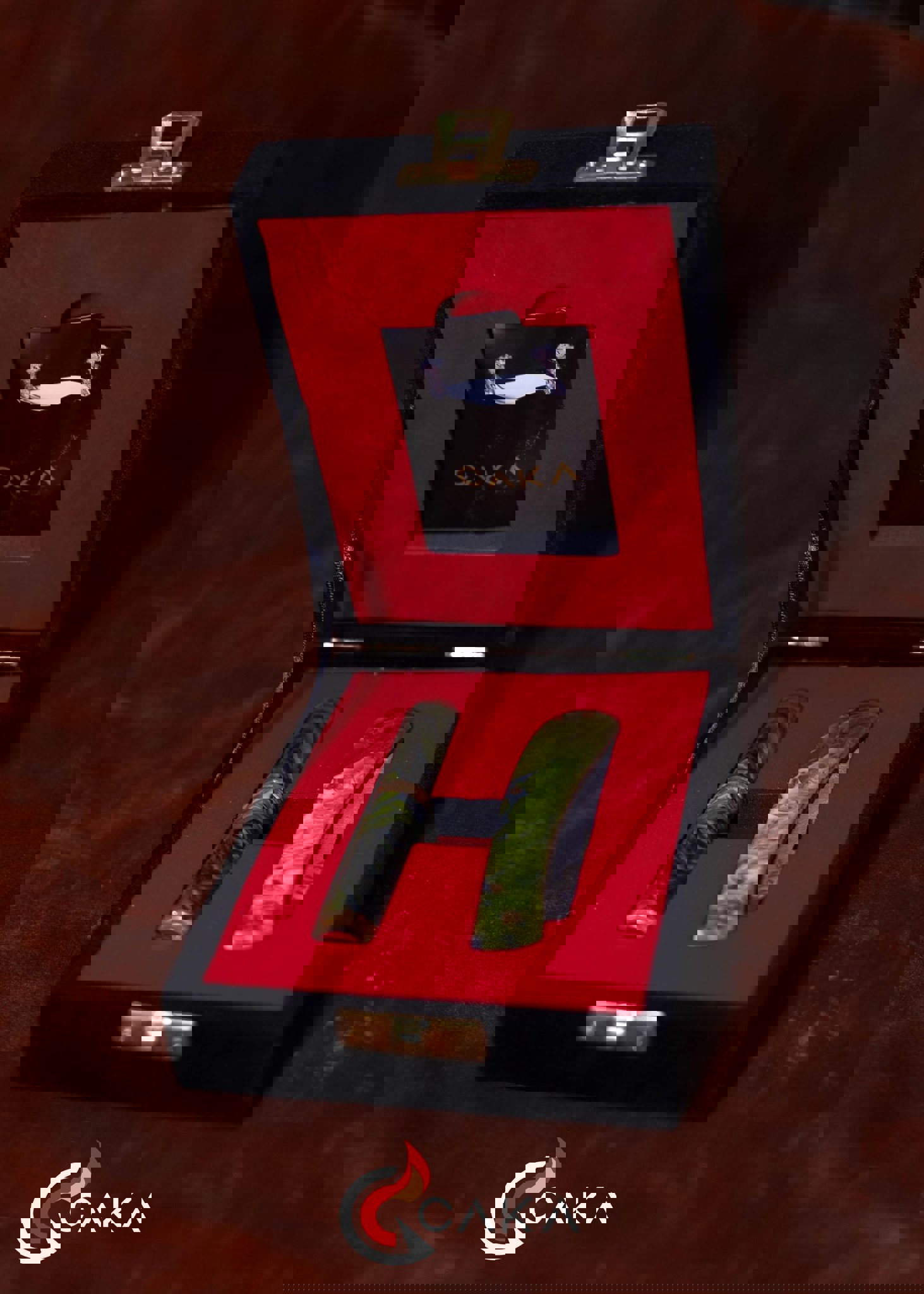 Origin - Bıçak Çakmak Seti, CAKA’nın bıçak & çakmak kategorisinde el işçiliğiyle hazırlanan özel setlerinden biridir. Epoksi ve pirinç gövde yapısı ile 4140 çelik bıçak formu bir araya gelir; serinin ilk yorumu olarak dengeli hatları ve güçlü malzeme hissini öne çıkarır. Her sette desen, ton ve yüzey geçişleri doğal üretim karakteri nedeniyle kendine özgüdür.